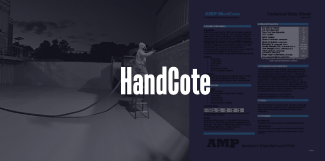 Handcote is a self-leveling, hand mix polyurea that is designed for small coating or patching applications. This material can be processed through non-heated plural component equipment if desired. It is ideal in applications where an elastomeric is desired and will acommodate substrate movement. This ambient curing material is great for low pressure spraying and can acommodate below freezing applications.